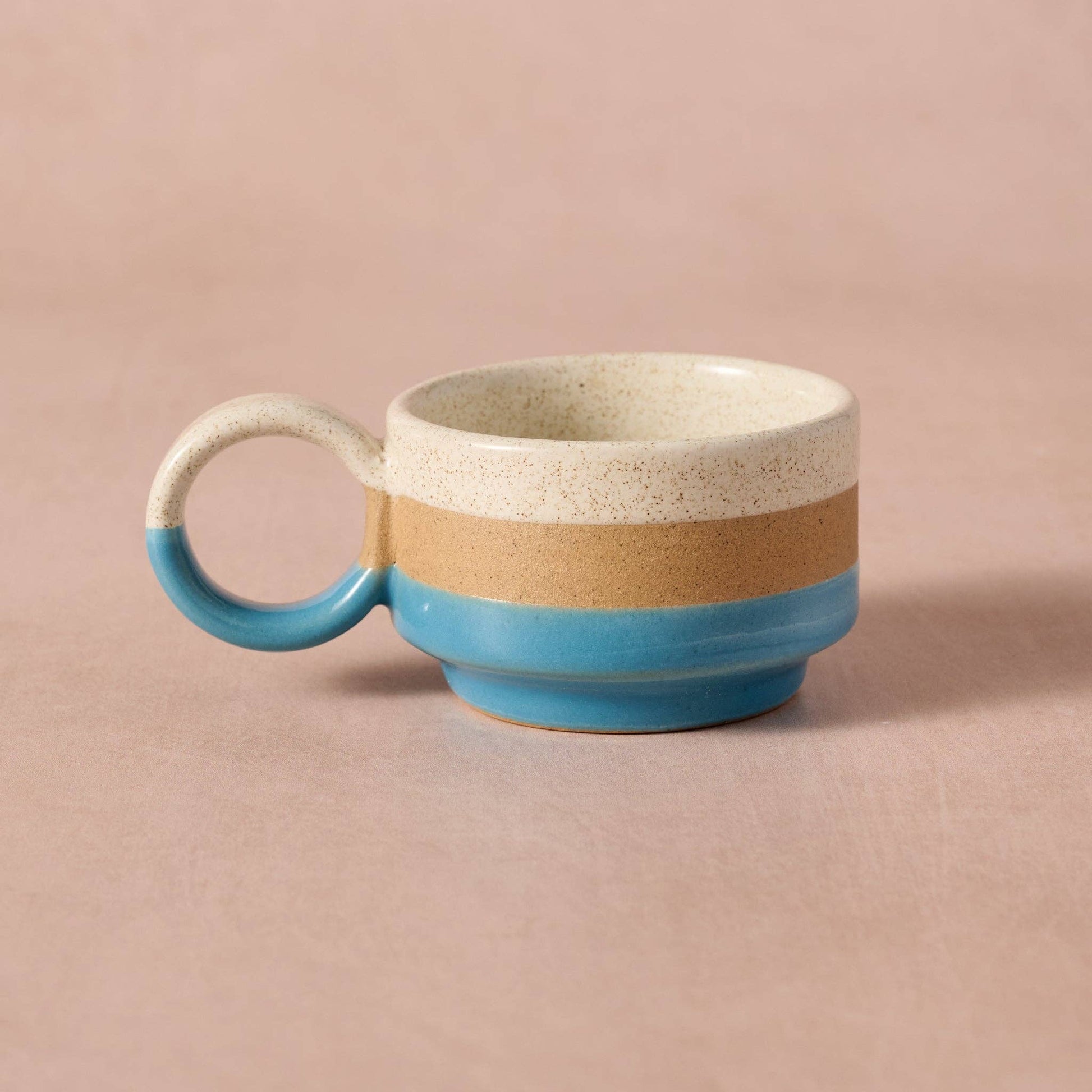 Bring a fresh, fall vibe to your morning cup of joe or coffee bar with this fantastic espresso mug! This beautifully crafted, glazed stoneware mug from Nepal comes in a striking array of autumn colors, including blue, orange, red and white highlighted by stripes of natural and speckled tan. The 2-ounce capacity makes it a perfect for that satisfying sip. If you choose more than one, they stack for space-saving convenience. The stylish way to enjoy that comforting hot beverage on chilly autumn mornings! Handcrafted by fair trade artisans at Association for Craft Producers (ACP) in Nepal, a nonprofit group that provides design, marketing, management and technical services to low-income artisans, the majority of them women, providing regular, fair wages.