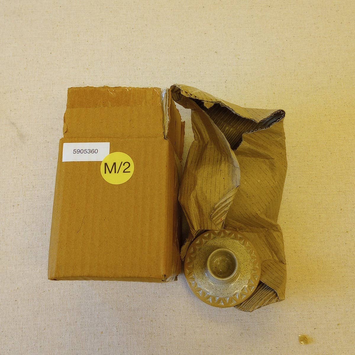 Enhance your home decor with this handsome ceramic accessory! Featuring decorative triangular etching around the base, this taper candle holder features a versatile brown flecked on cream color scheme. Light up your space and create tasteful ambiance with this Ten Thousand Villages Exclusive piece handcrafted in Nepal. Materials: Ceramic - Measures: 2.8"D x 1.4"H - Colors: Cream, Brown, Terracotta - Notes: Candle not included. Do not leave candles burning unattended. - Handcrafted in Nepal